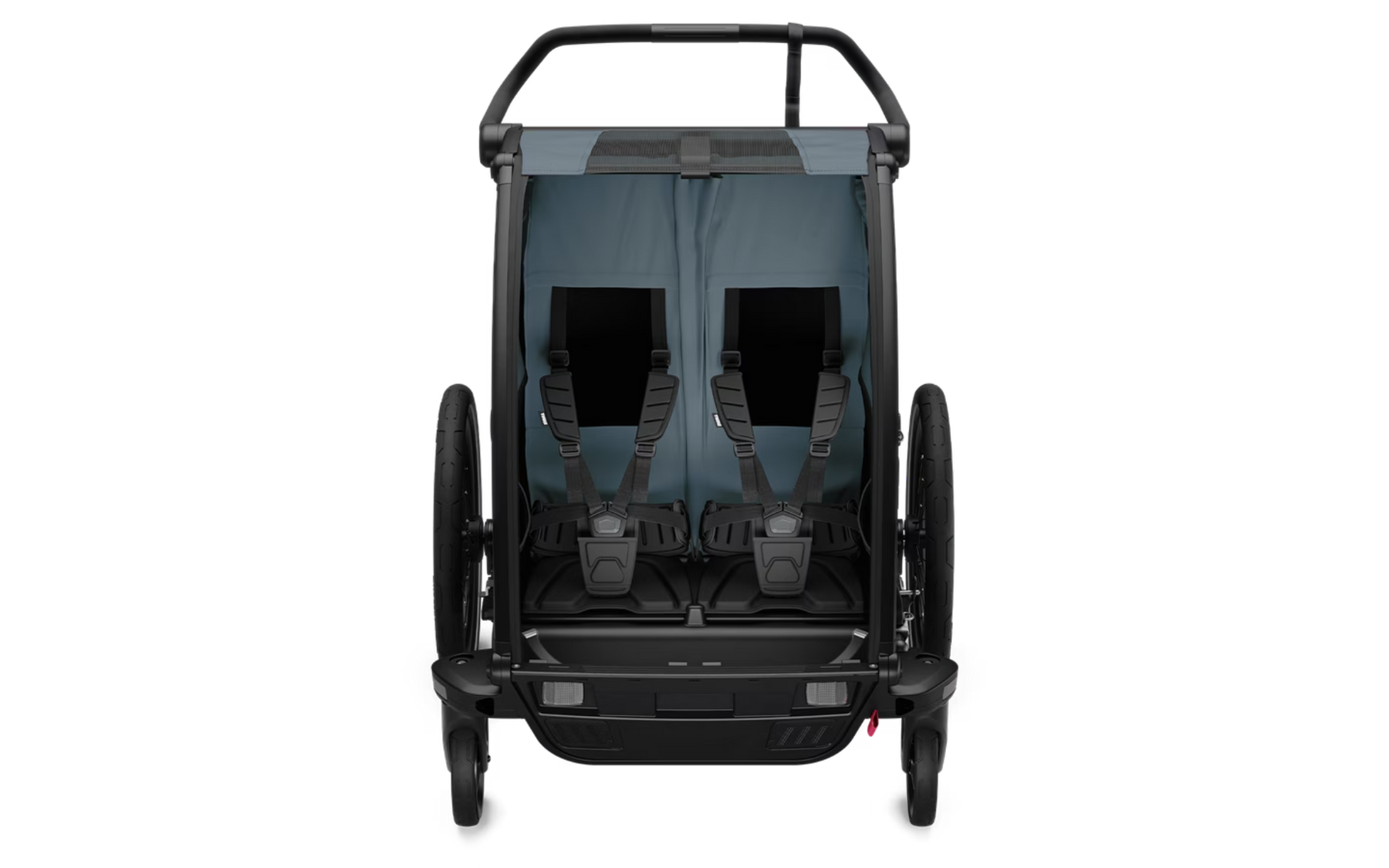 Die Sitze lassen sich mit einem Handgriff in einen Liegesitz verwandeln. Das Thule VersaWing System ermöglicht ein schnelles und einfaches Umrüsten zwischen verschiedenen Aktivitäten unabhängig vom verwendeten Set. Die Einstellbare Blattfedern sorgen für eine sanfte Fahrt. Die komfortable gepolsterte Sitze sind abnehmbar und leicht zu reinigen. Der XL-Laderaum lässt sich für mehr Beinfreiheit beim Joggen verstauen. Das Thule Click n’ Store bietet ein bequemes Mitführen des Spazier-, Jogging- und Radfahr-Sets an Bord, wenn Sie zwischen verschiedenen Aktivitäten wechseln möchten. Das Fahrrad und Buggy-Set wird mitgeliefert.