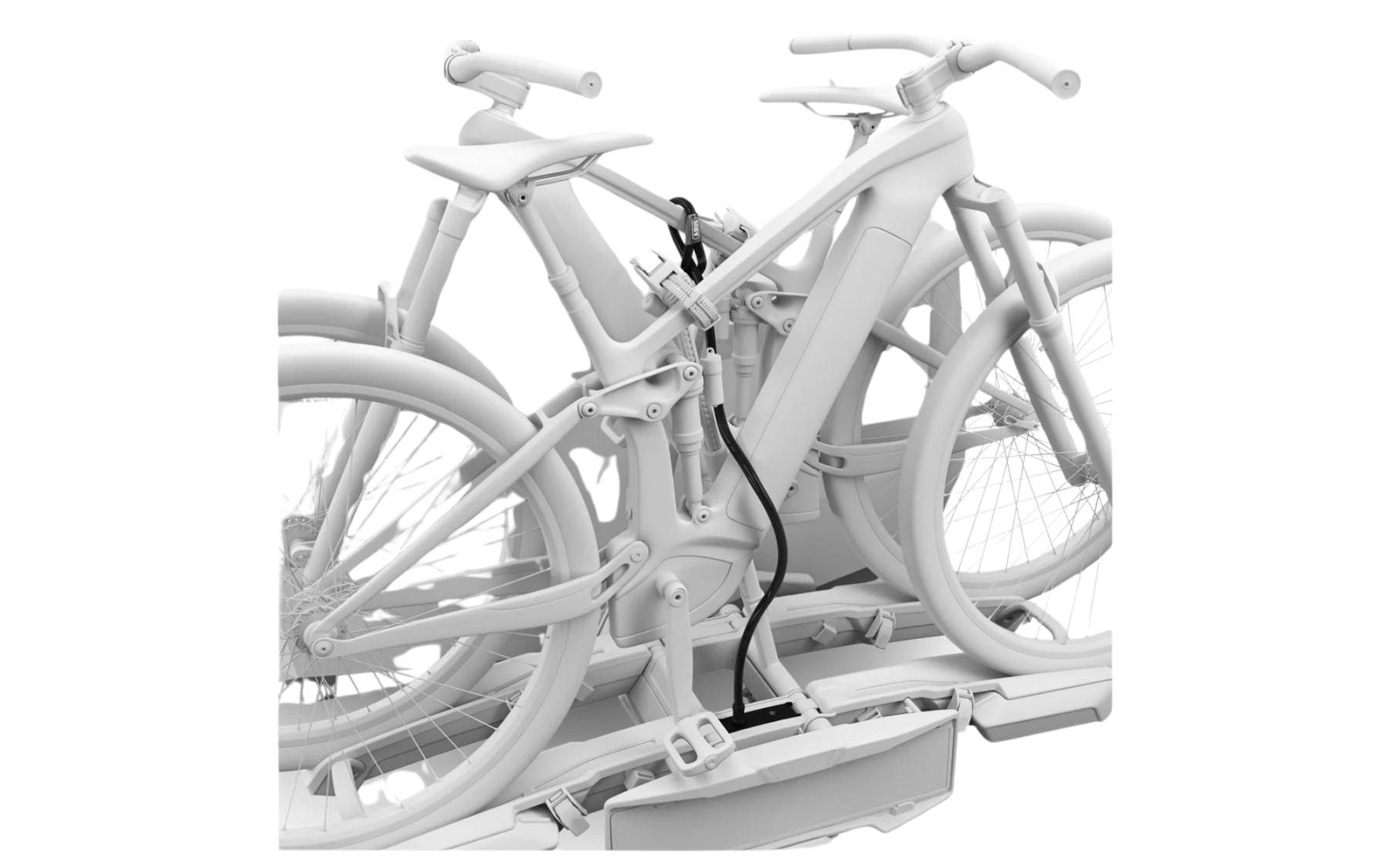 In Zusammenarbeit mit ABUS entwickeltes hochwertiges Schloss für mehr Sicherheit und Schutz vor Diebstahl. Das robuste Kabel hat eine Länge von 150 cm und eine Stärke von 1,2 cm. Das Schloss ist sowohl mit dem Fahrradträger für zwei Fahrräder als auch mit dem für drei Fahrräder kompatibel.